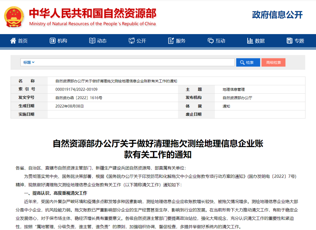 自然資源部辦公廳關(guān)于做好清理拖欠測(cè)繪地理信息企業(yè)賬款有關(guān)工作的通知