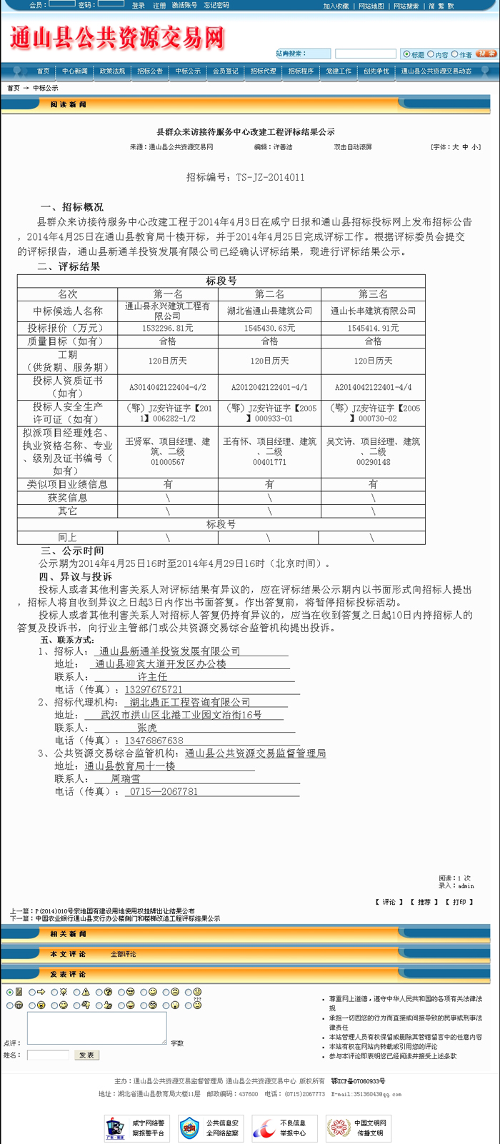 縣群眾來訪接待服務中心改建工程評標結(jié)果公示