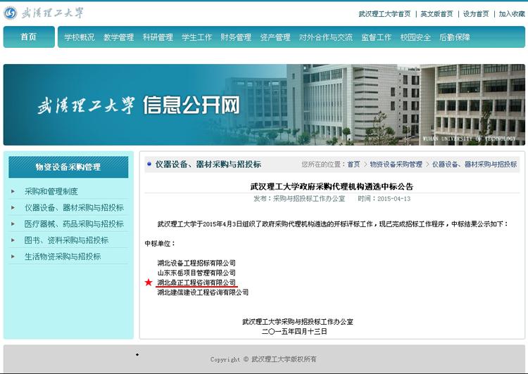 【經(jīng)營成果】我司入選武漢理工大學(xué)政府采購代理機構(gòu)庫