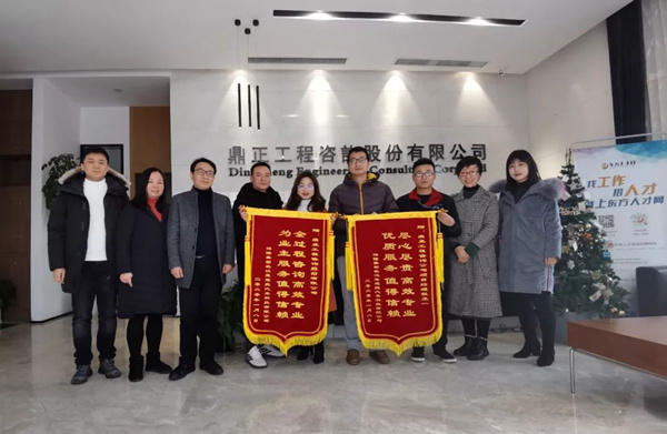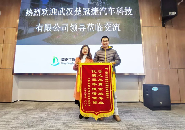 2020年1月14日,武漢楚冠捷汽車科技有限公司龔經理、朱主任蒞臨鼎正咨詢公司,特向為其二期廠房建設項目提供全過程工程咨詢服務的鼎正咨詢團隊及項目負責人程正一贈送錦旗并表達感謝