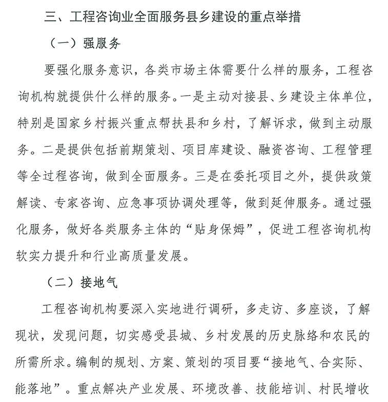 縣城城鎮(zhèn)化建設(shè)、鄉(xiāng)村建設(shè)是一項(xiàng)宏大的社會工程,需要整體的、長遠(yuǎn)的規(guī)劃。特別是城鄉(xiāng)“二元”化結(jié)構(gòu)較為明顯,大部分鄉(xiāng)鎮(zhèn)和村莊發(fā)展規(guī)劃欠缺,村落布局散亂,公共服務(wù)供給不足,嚴(yán)重制約了縣城、鄉(xiāng)村發(fā)展。規(guī)劃咨詢,注重規(guī)劃先行,因地制宜,可運(yùn)用工程技術(shù)、科學(xué)技術(shù)、經(jīng)濟(jì)管理和法律法規(guī)等多學(xué)科的知識與經(jīng)驗(yàn),為縣城建設(shè)項(xiàng)目決策提供智力服務(wù),解決縣城發(fā)展與定位問題,避免錯亂發(fā)展,無效競爭。