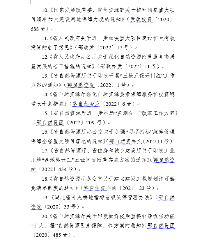 為貫徹落實黨中央、國務院關于穩經濟決策部署以及部、省工作要求,切實做好建設項目用地保障,推進有效投資重要項目盡快形成實物工作量,按照《自然資源部關于積極做好用地用海要素保障的通知》(自然資發〔2022〕129號)、《自然資源部等7部門關于加強用地審批前期工作積極推進基礎設施項目建設的通知》(自然資發〔2022〕130號)和《省人民政府關于進一步加快重大項目建設擴大有效投資的若干意見》(鄂政發〔2022〕17號)、《省人民政府辦公廳關于深化自然資源改革服務高質量發展的若干措施的通知》(鄂政辦發〔2022〕11號)等文件精神,現就有關要求通知如下: