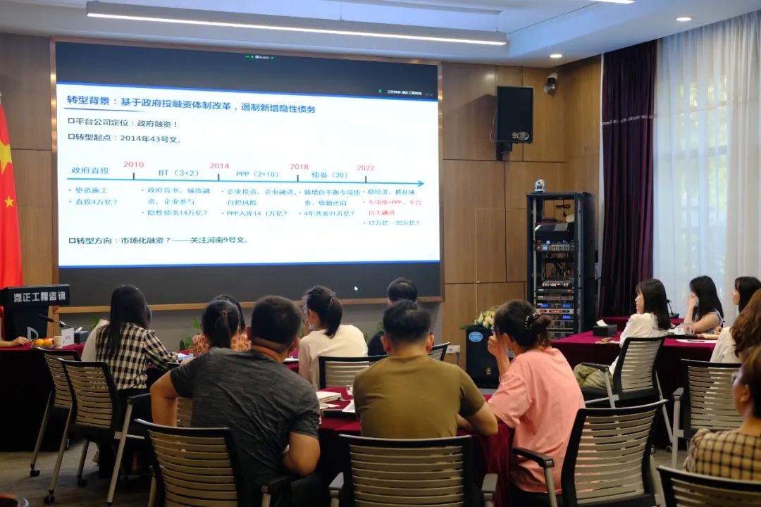 在兩個小時的分享中,楊總從政府投融資平臺公司的前世今生,系統介紹了政府投融資體制改革背景、政府投融平臺公司轉型發展思路、工程咨詢企業與政府投融平臺公司合作模式
