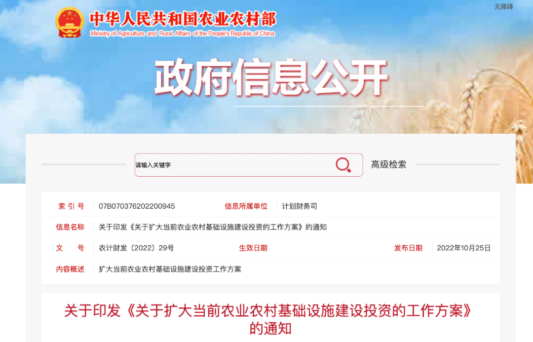 加強(qiáng)農(nóng)業(yè)農(nóng)村基礎(chǔ)設(shè)施建設(shè),是擴(kuò)大有效投資、穩(wěn)住經(jīng)濟(jì)大盤的重點任務(wù),有利于增強(qiáng)食物保供能力、帶動基礎(chǔ)產(chǎn)業(yè)發(fā)展、暢通城鄉(xiāng)經(jīng)濟(jì)循環(huán),具有長遠(yuǎn)的重要性和現(xiàn)實的緊迫性。9月21日國務(wù)院常務(wù)會議審議通過了《關(guān)于擴(kuò)大當(dāng)前農(nóng)業(yè)農(nóng)村基礎(chǔ)設(shè)施建設(shè)投資的工作方案》,現(xiàn)印發(fā)給你們,請認(rèn)真貫徹落實。