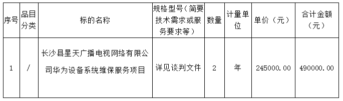 1、項目名稱:長沙縣星天廣播電視網(wǎng)絡(luò)有限公司華為設(shè)備系統(tǒng)維保服務(wù)項目