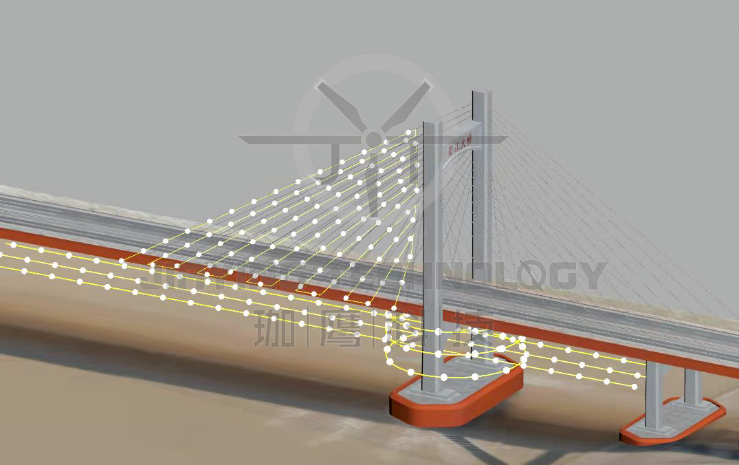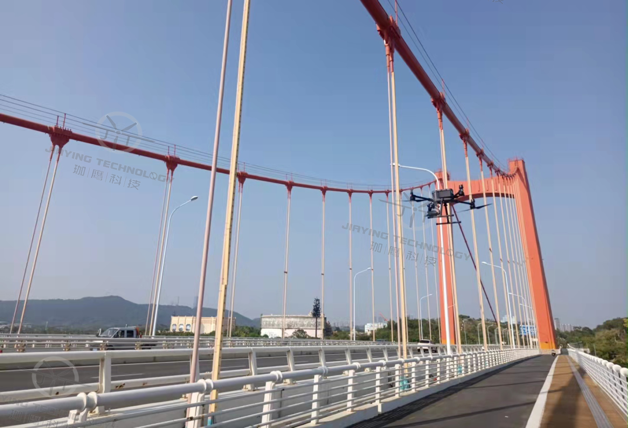 珈鷹根據(jù)這座斜拉索大橋所處的位置環(huán)境選擇了適合的無人機(jī)型號(hào)和載荷,進(jìn)行必要的調(diào)試與檢查。采用多源數(shù)據(jù)融合的方法,攻克了衛(wèi)星信號(hào)盲區(qū)這一難題,進(jìn)而可對(duì)橋梁底部、橋墩、支座、側(cè)面、橋塔、橋索等部位的外觀進(jìn)行全面高清圖像采集。