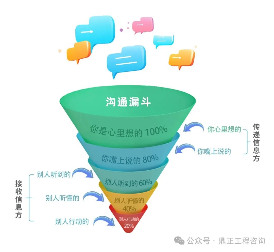 從溝通方到接收方,中間涉及很多環節,也或多或少存在“溝通漏斗”的情況,比如表達不清醒、信息損耗、理解偏差、反饋有誤等