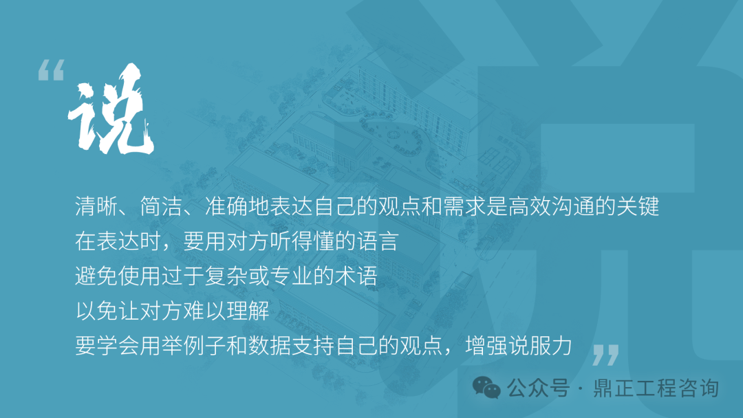 交流要看對象,不能對牛彈琴。與農民工交流要用農民工聽得懂的語言;與同行或其他咨詢機構交流要用專業語言;與直接上級交流要及時反饋并提出合理建議;與客戶交流,要從客戶的視角出發,為其提供最優解決方案。