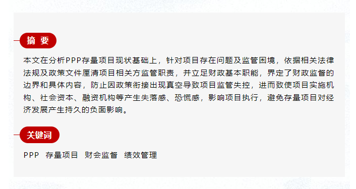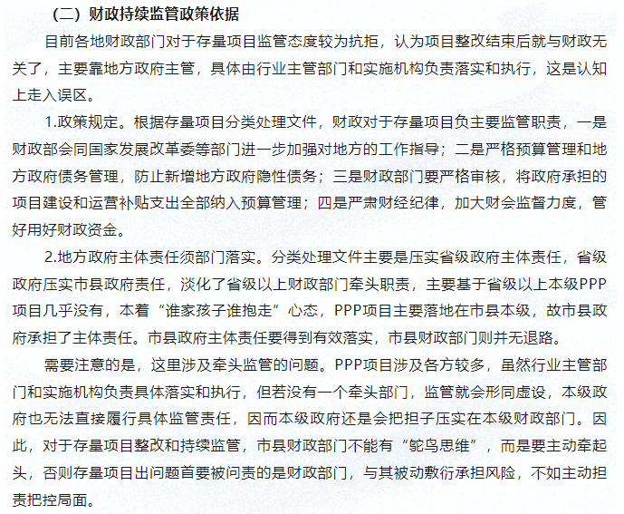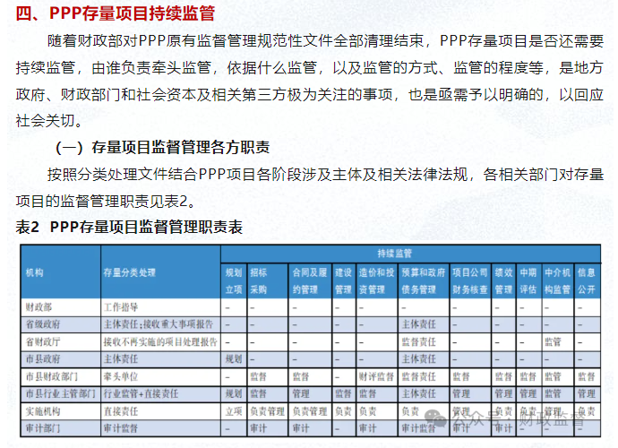 新機制下PPP存量項目持續監管探討