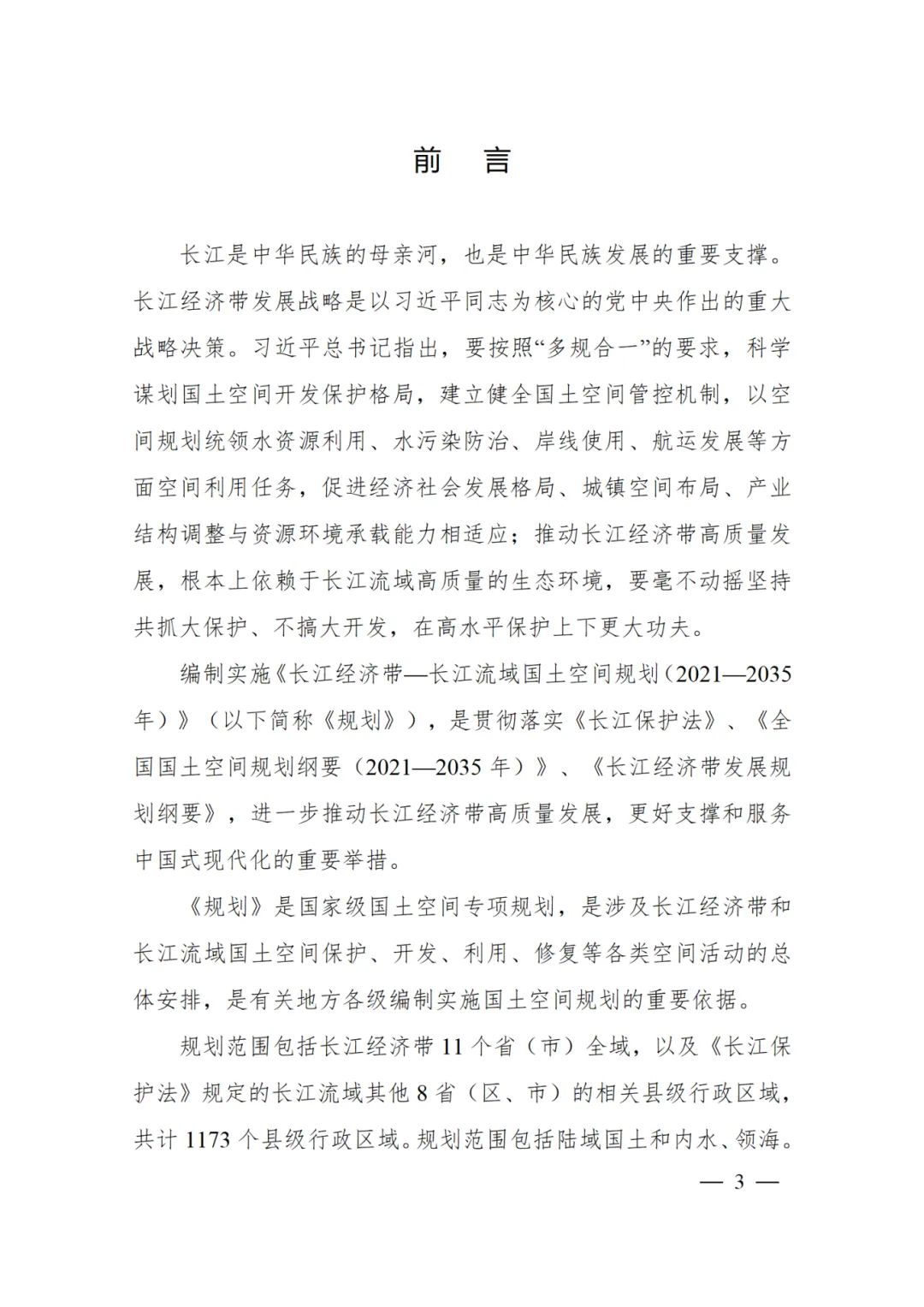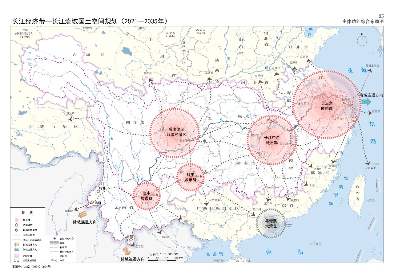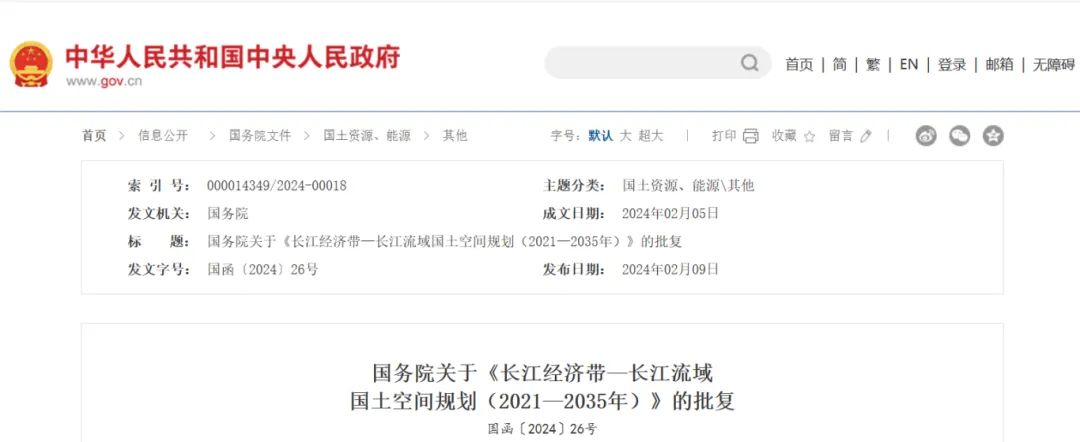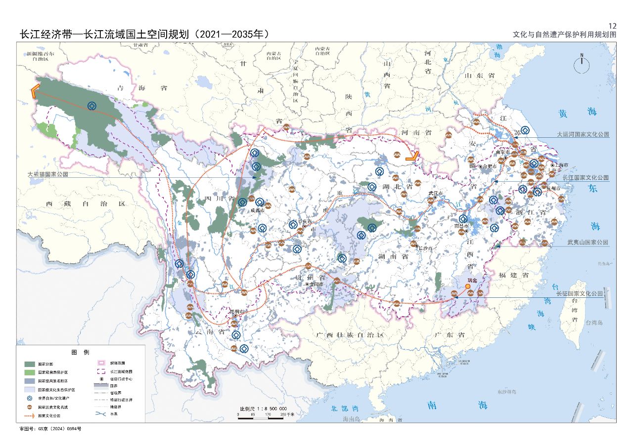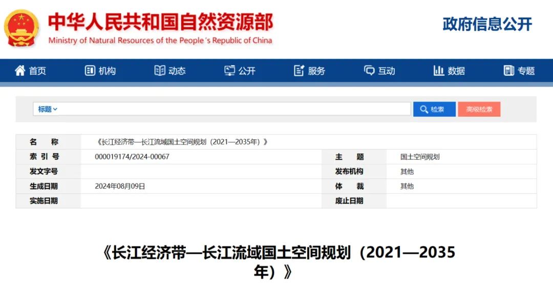 2024年2月9日,《長江經濟帶—長江流域國土空間規劃(2021—2035年)》經國務院批復同意。9月10日,自然資源部正式印發《長江經濟帶—長江流域國土空間規劃(2021—2035年)》。規劃范圍包括長江經濟帶11個?。ㄊ校┤?/strong>,以及《長江保護法》規定的長江流域其他8?。▍^、市)的相關縣級行政區域,共計1173個縣級行政區域。規劃范圍包括陸域國土和內水、領海。其中,陸域面積240萬平方公里。(后附規劃范圍詳細表格)規劃期限為2021年至2035年。