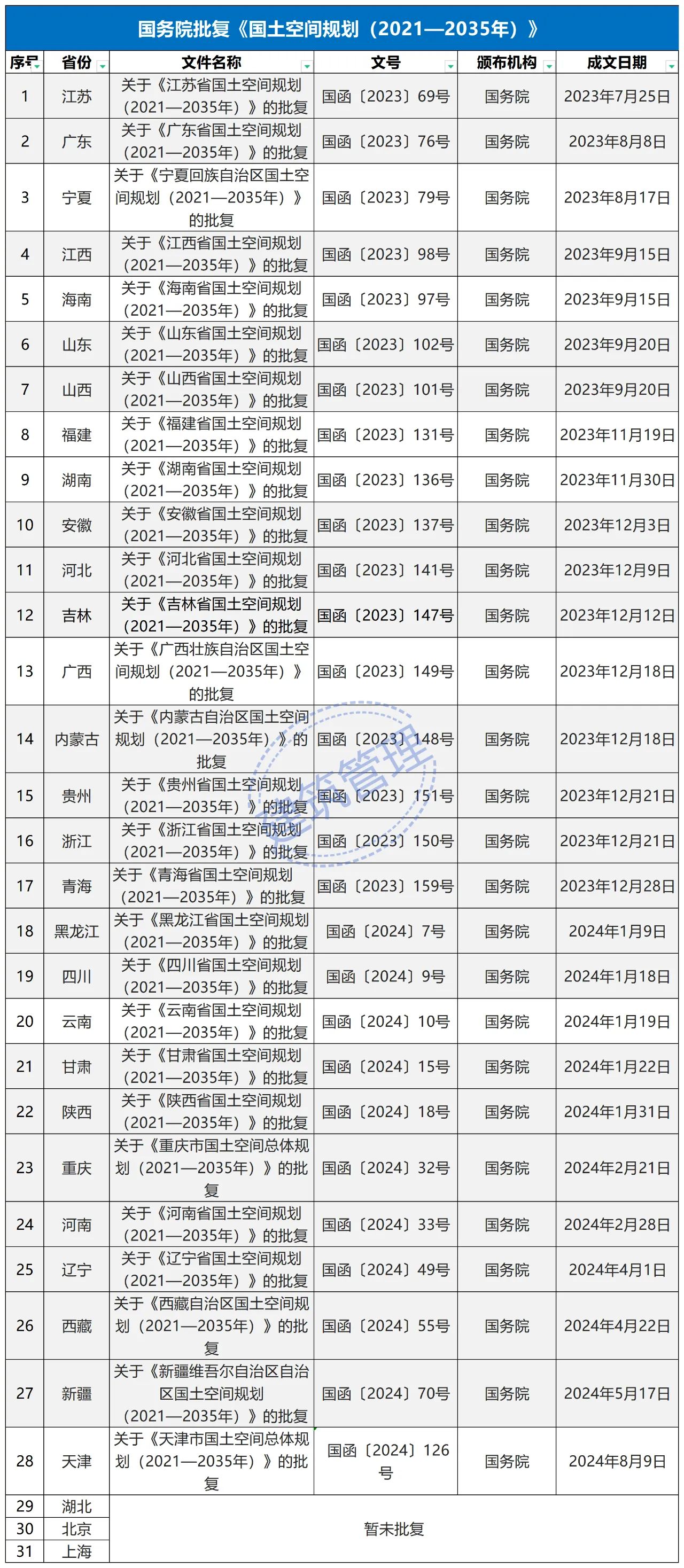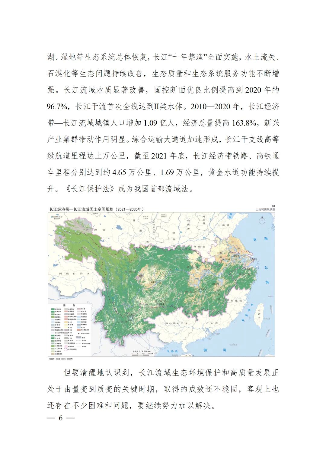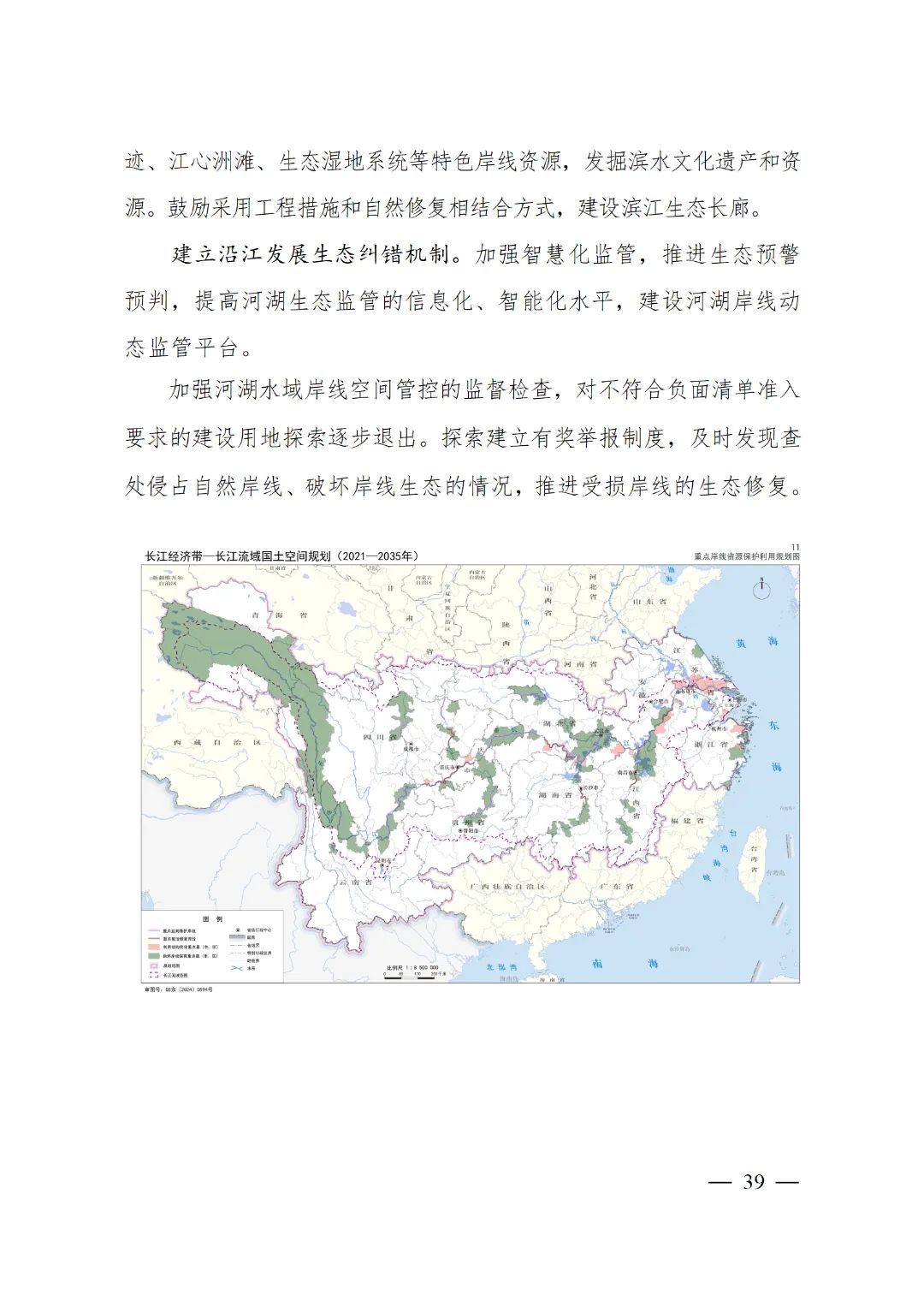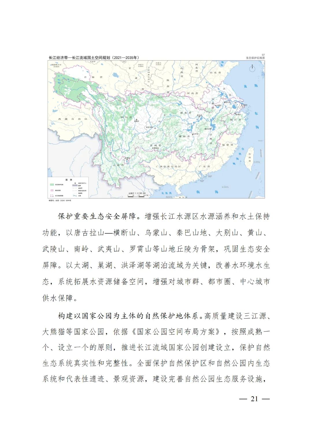 2024年2月9日,《長江經濟帶—長江流域國土空間規劃(2021—2035年)》經國務院批復同意。9月10日,自然資源部正式印發《長江經濟帶—長江流域國土空間規劃(2021—2035年)》。規劃范圍包括長江經濟帶11個?。ㄊ校┤?/strong>,以及《長江保護法》規定的長江流域其他8?。▍^、市)的相關縣級行政區域,共計1173個縣級行政區域。規劃范圍包括陸域國土和內水、領海。其中,陸域面積240萬平方公里。(后附規劃范圍詳細表格)規劃期限為2021年至2035年。