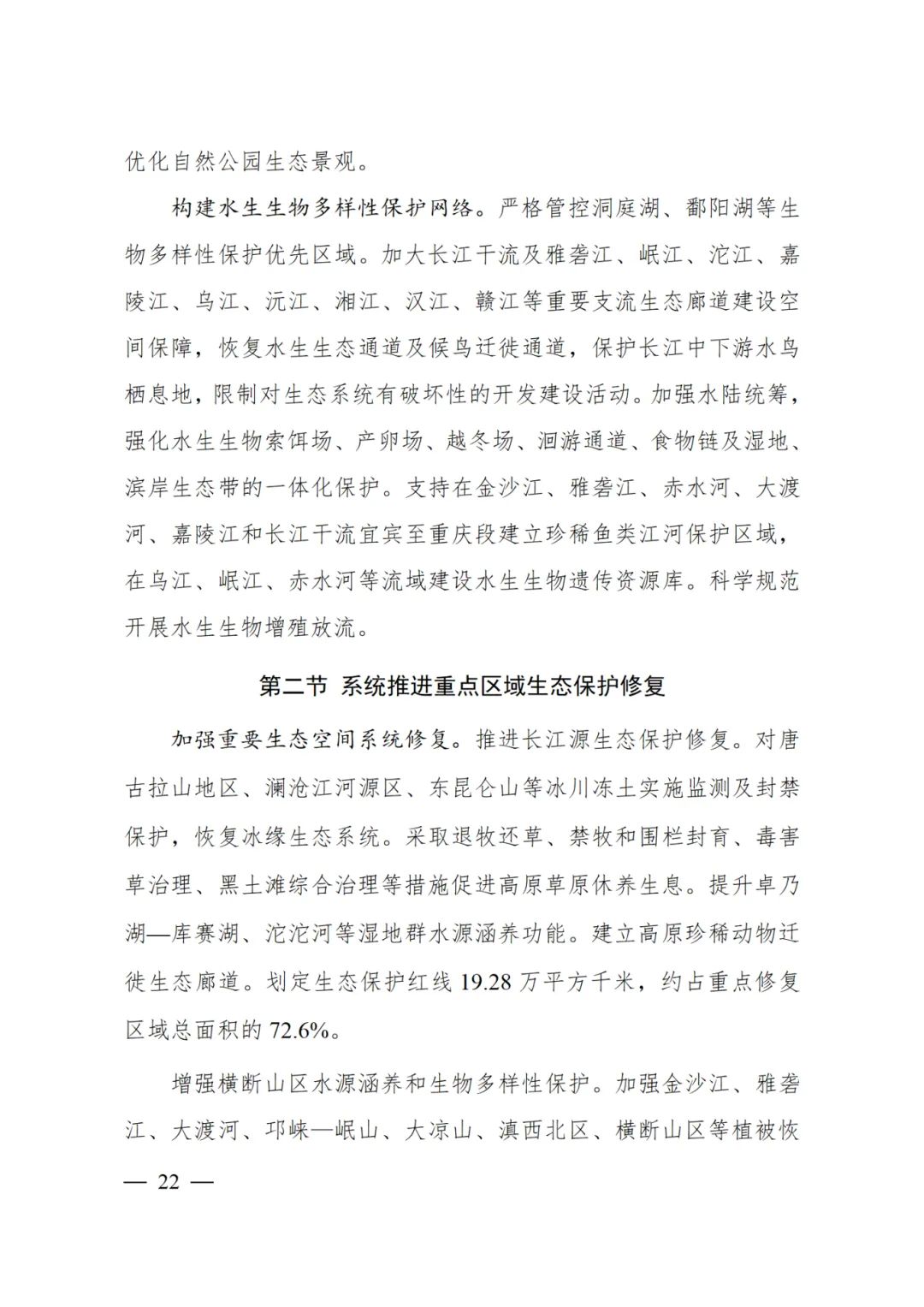 加快蓄滯洪區工程與安全建設,強化蓄滯洪區土地利用、產業引導、人口規模管控。開展洲灘民垸分類治理。充分考慮氣候變化引發的極端天氣影響和防洪形勢變化,科學提高長江流域防洪工程標準。支持水庫群等水工程聯合調度,發揮防洪工程體系整體優勢。