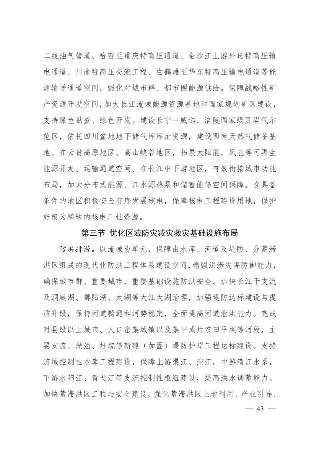 在云貴高原地區、高山峽谷地區,拓展太陽能、風能等可再生能源開發、運輸通道空間。在長江中下游地區,有效銜接城市功能布局,加大分布式能源、江水源熱泵和儲蓄能等空間保障。在具備條件的地區積極安全有序發展核電,保障核電工程建設用地,保護好極為稀缺的核電廠址資源。