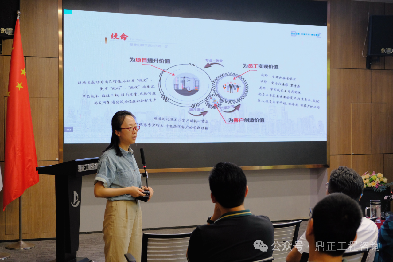 會議伊始,毛迎霞總經理宣貫了《以價值創(chuàng)造者為本的鼎正文化體系》,緊扣“價值創(chuàng)造”這一核心要義,全面解讀了企業(yè)文化升級后的使命、愿景、價值觀及人才觀。