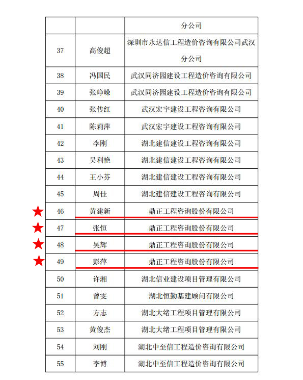 根據(jù)武建價協(xié)【2016】77號文件公示,我司員工楊靜、吳瓊榮獲2015-2016年度武漢市"優(yōu)秀造價工程師"稱號,黃建新、張恒、吳輝、彭萍榮獲2015-2016年度“優(yōu)秀造價專業(yè)人員”稱號。此次榮譽的獲得,既是對我司同志工作的肯定,也展示了鼎正人愛崗敬業(yè)、爭創(chuàng)一流的精神風貌。鼎正公司將以更加昂揚的斗志和飽滿的熱情,服務(wù)于企業(yè)、服務(wù)于社會!