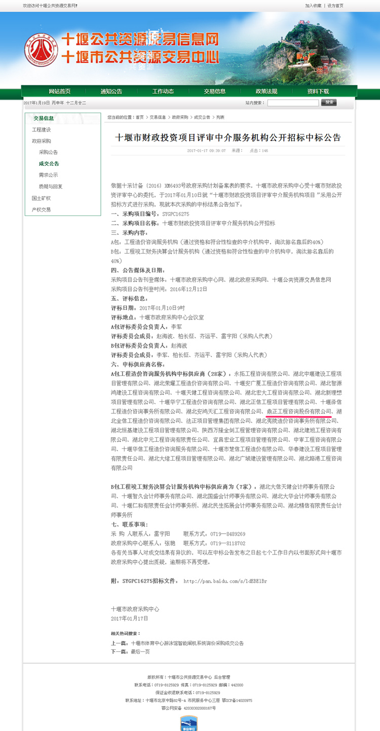 【經(jīng)營(yíng)成果】我司入十堰市財(cái)政投資項(xiàng)目評(píng)審中介服務(wù)機(jī)構(gòu)庫(kù)