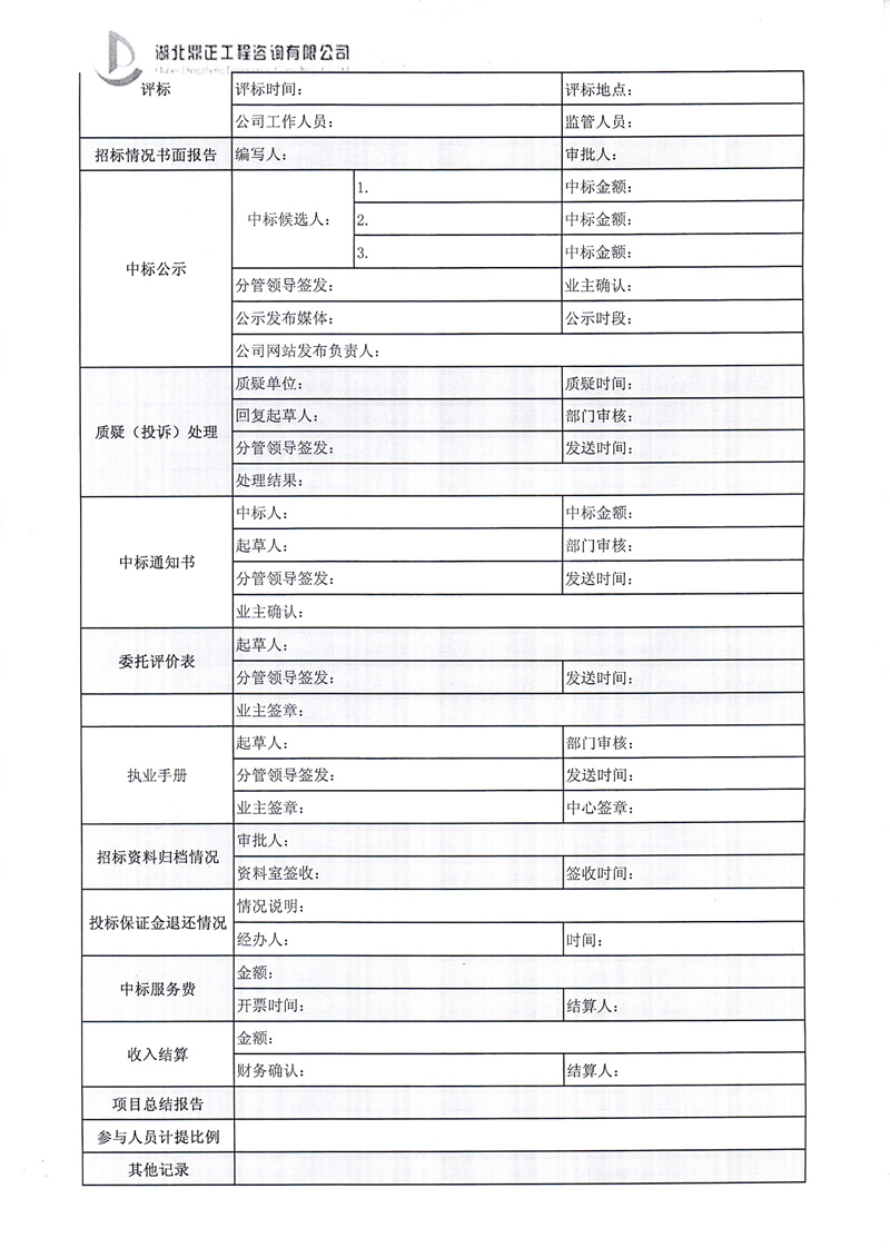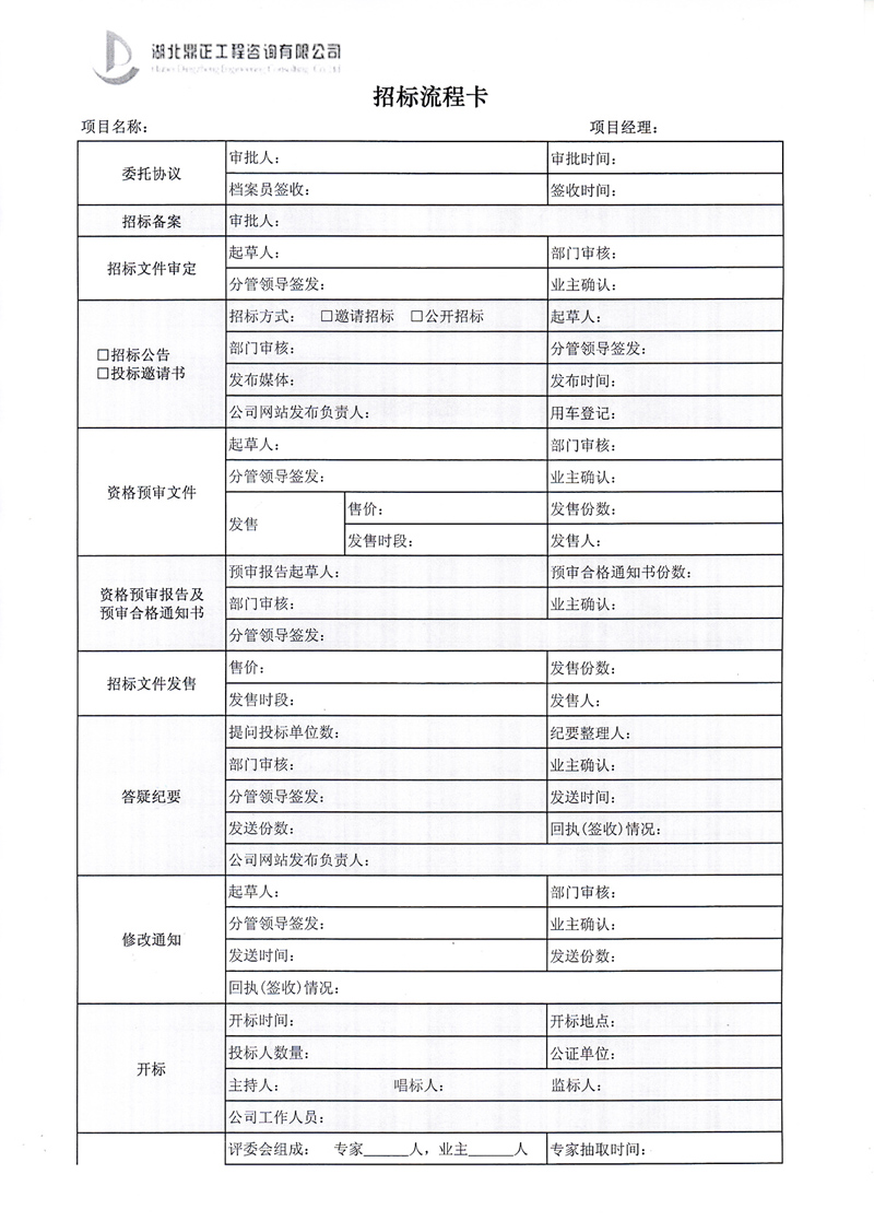 招標業(yè)務操作流程卡